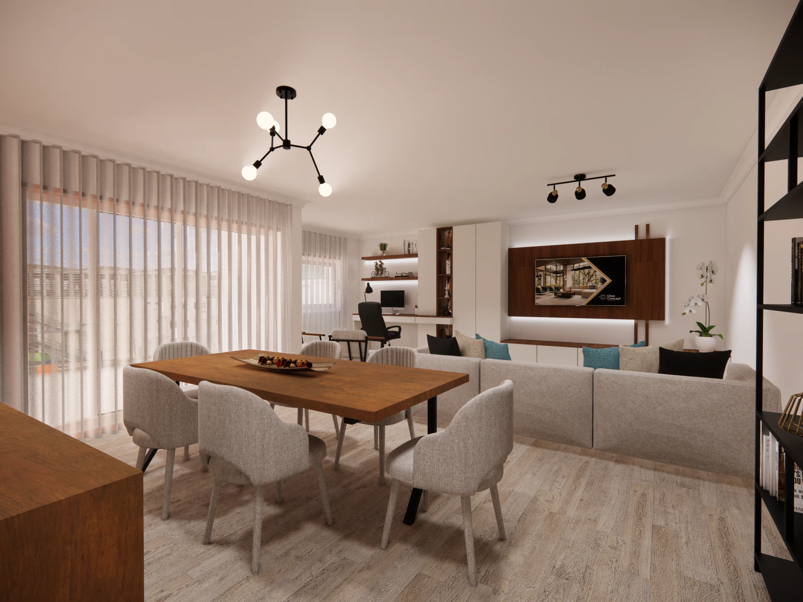 A abordagem da Class Concept para este projeto teve como prioridade traduzir a personalidade da cliente num espaço visualmente harmonioso e funcional. Desde o primeiro momento, trabalhámos com base nas suas preferências estéticas, integrando elementos decorativos marcantes, como obras de arte, com soluções práticas de decoração.